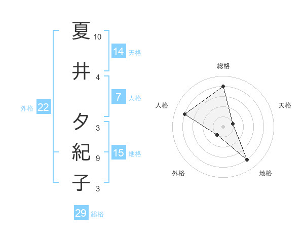 夏井 夕紀子さんを姓名の画数から五運を鑑定