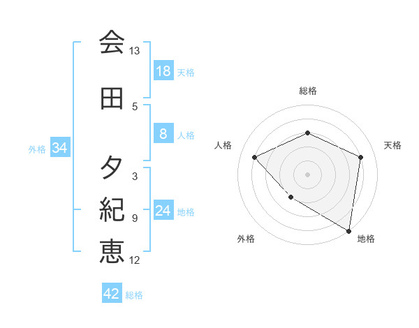 会田 夕紀恵さんを姓名の画数から五運を鑑定