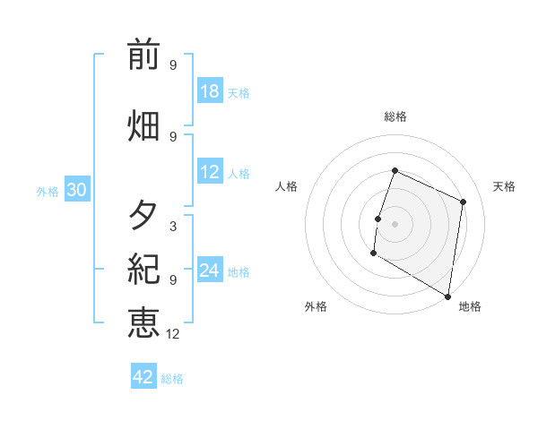 前畑 夕紀恵さんの天格は18画の4点!