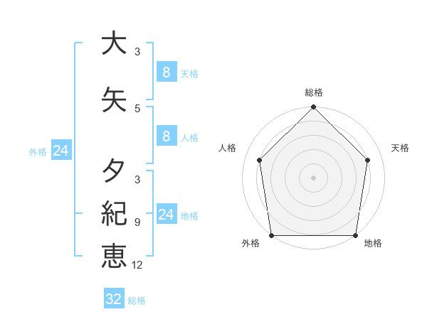 大矢 夕紀恵さんの外格は24画の5点!