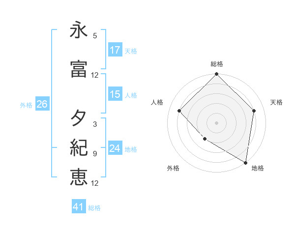 永富 夕紀恵さんを姓名の画数から五運を鑑定
