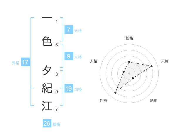 一色 夕紀江さんを姓名の画数から五運を鑑定
