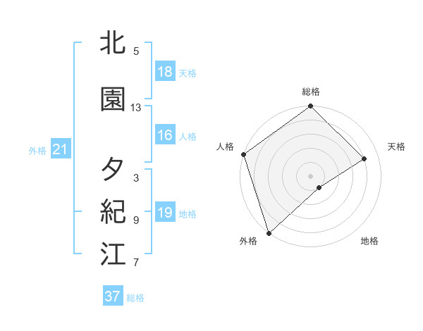 北園 夕紀江さんの天格は18画の4点!