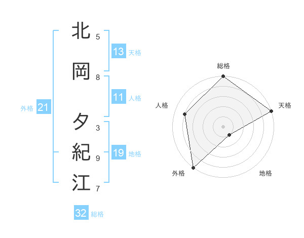 北岡 夕紀江さんの総格は32画の5点