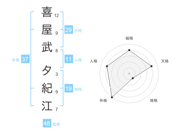 喜屋武 夕紀江さんの外格は37画の5点!