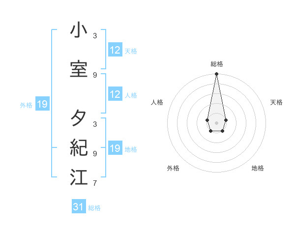 小室 夕紀江さんを姓名の画数から五運を鑑定