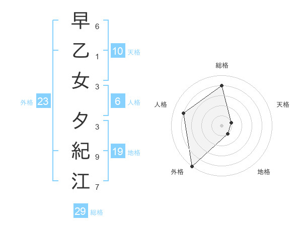 早乙女 夕紀江さんの総格は29画の4点!