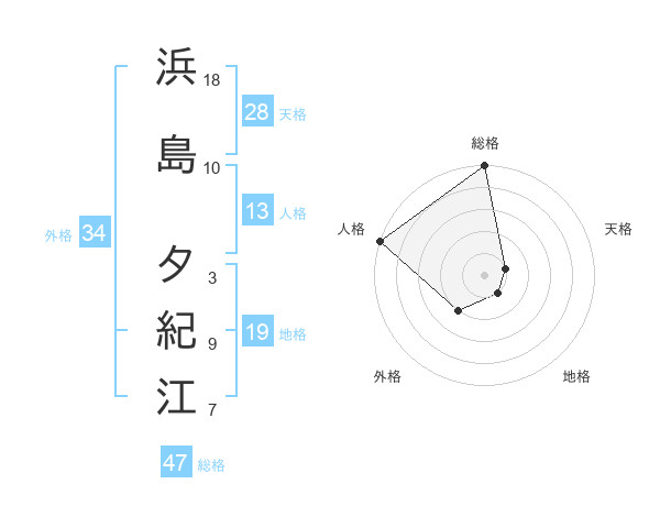 浜島 夕紀江さんの総格は47画の5点