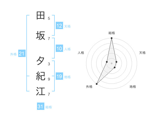 田坂 夕紀江さんを姓名の画数から五運を鑑定