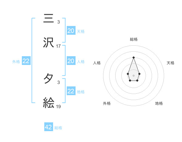 三沢 夕絵さんの外格は22画の1点!