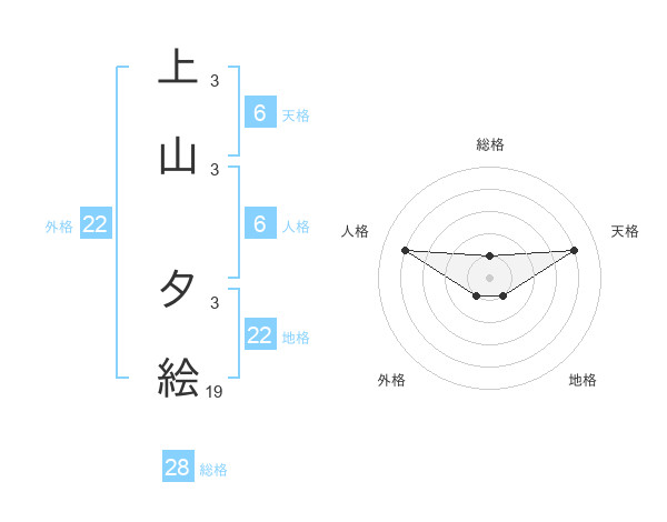上山 夕絵さんを姓名の画数から五運を鑑定