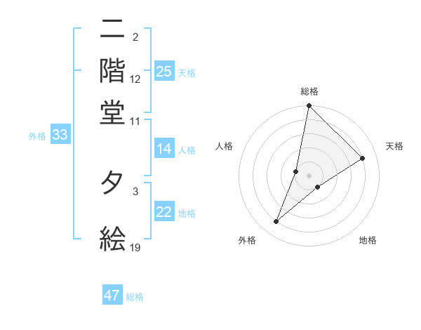 二階堂 夕絵さんの総格は47画の5点!