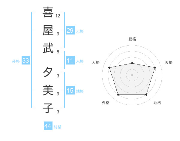 喜屋武 夕美子さんの総格は44画の2点!