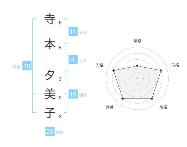寺本 夕美子さんの天格は11画の4点!