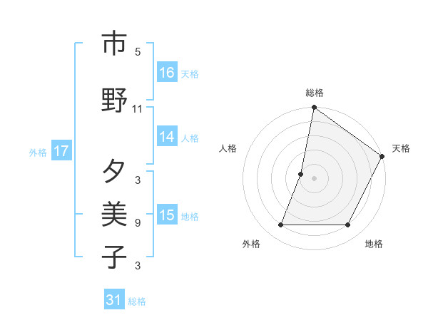 市野 夕美子さんを姓名の画数から五運を鑑定