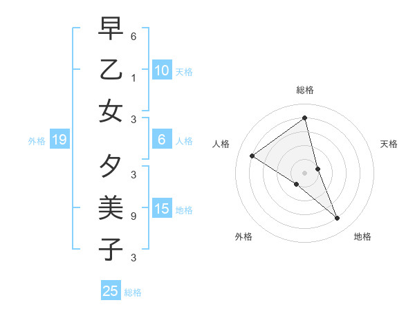 早乙女 夕美子さんを姓名の画数から五運を鑑定