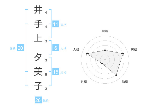 井手上 夕美子さんを姓名の画数から五運を鑑定