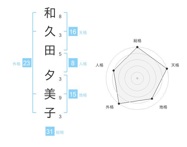 和久田 夕美子さんの総格は31画の5点!