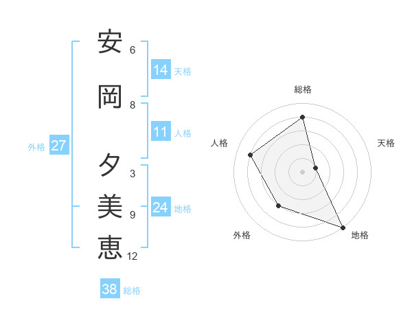 安岡 夕美恵さんを姓名の画数から五運を鑑定