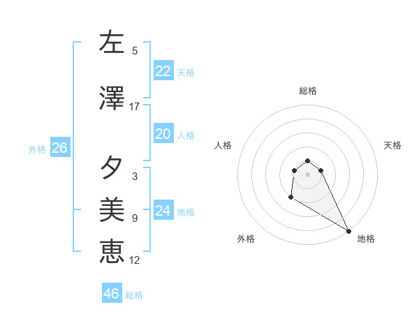 左澤 夕美恵さんを姓名の画数から五運を鑑定