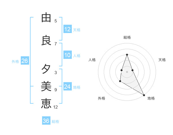 由良 夕美恵さんを姓名の画数から五運を鑑定