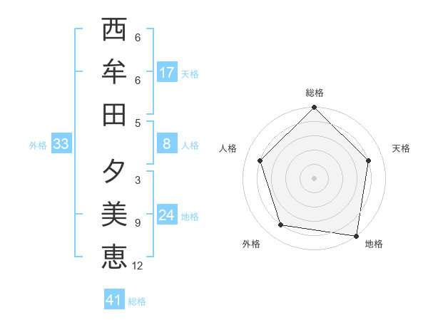 西牟田 夕美恵さんを姓名の画数から五運を鑑定