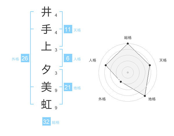井手上 夕美虹さんを姓名の画数から五運を鑑定
