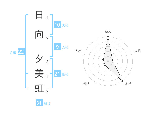 日向 夕美虹さんを姓名の画数から五運を鑑定