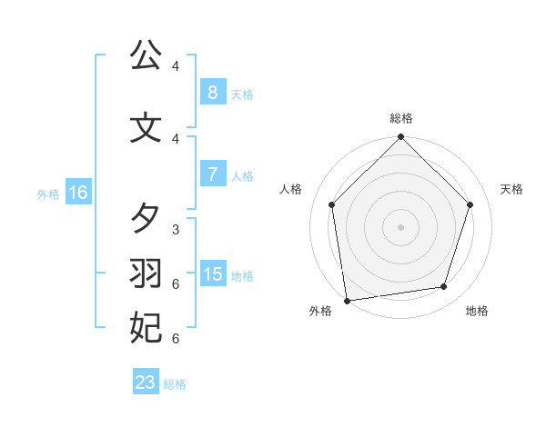 公文 夕羽妃さんを姓名の画数から五運を鑑定