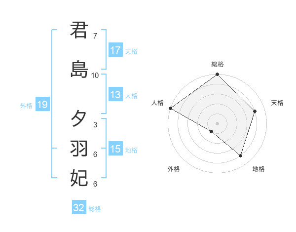 君島 夕羽妃さんの総格は32画の5点!