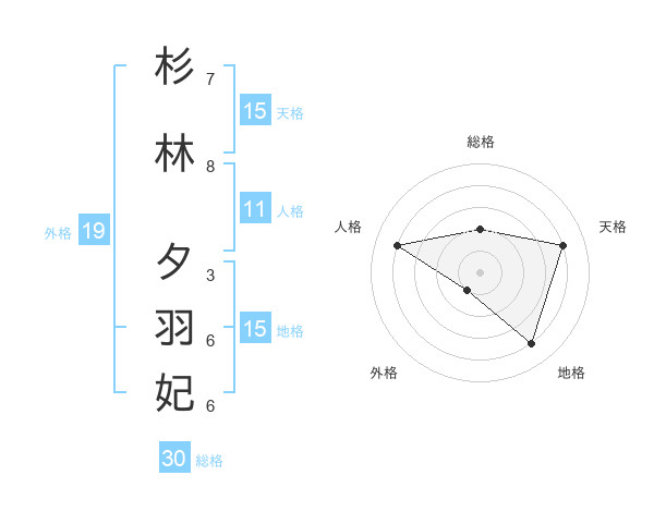 杉林 夕羽妃さんの天格は15画の4点!