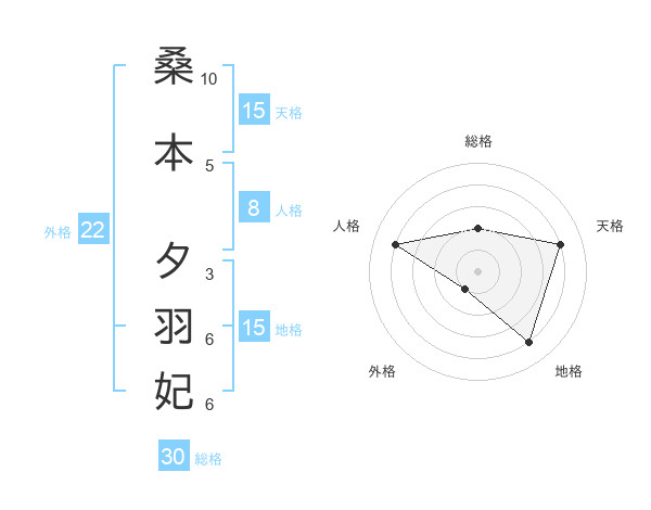 桑本 夕羽妃さんの総格は30画の2点!