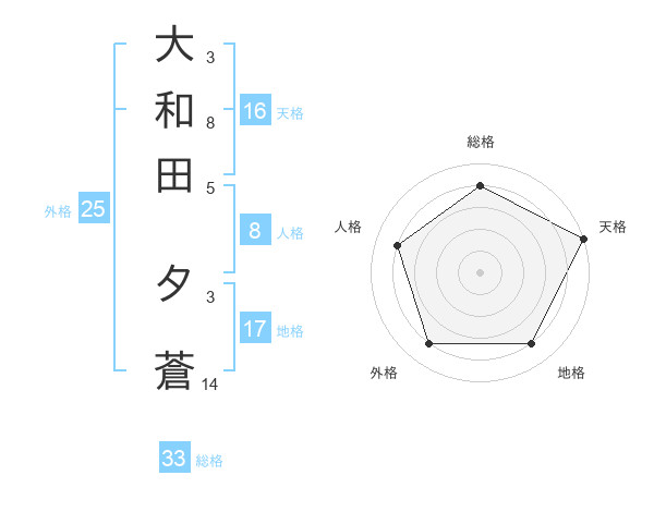 大和田 夕蒼さんを姓名の画数から五運を鑑定
