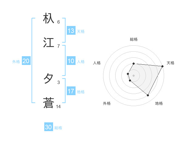 杁江 夕蒼さんを姓名の画数から五運を鑑定