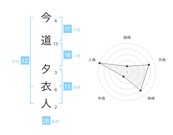 今道 夕衣人さんを姓名の画数から五運を鑑定