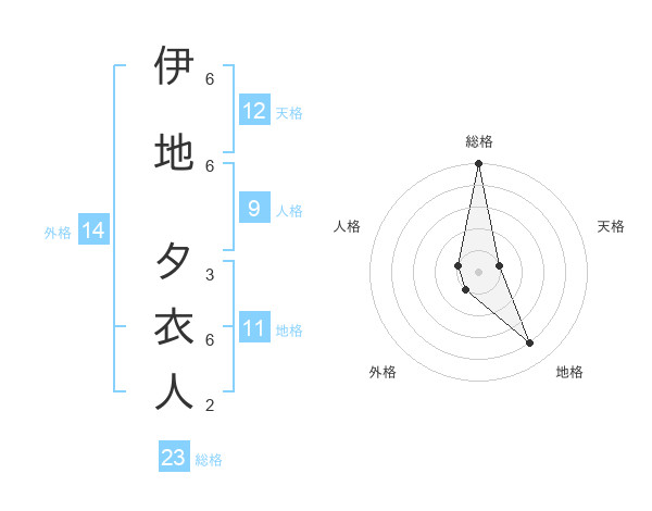 伊地 夕衣人さんを姓名の画数から五運を鑑定