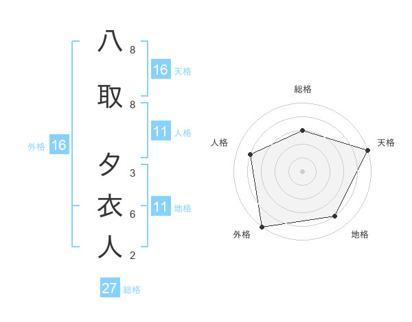 八取 夕衣人さんの天格は16画の5点!