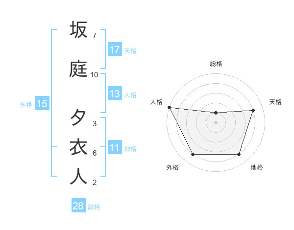 坂庭 夕衣人さんの総格は28画の1点!