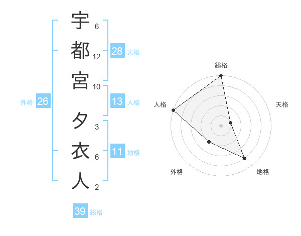 宇都宮 夕衣人さんを姓名の画数から五運を鑑定