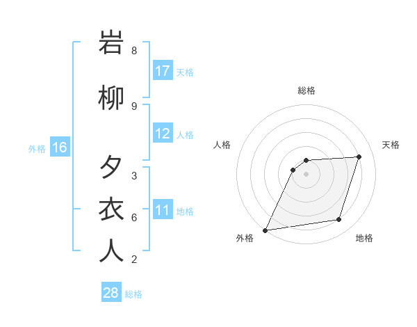 岩柳 夕衣人さんの天格は17画の4点!