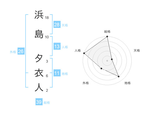 浜島 夕衣人さんを姓名の画数から五運を鑑定