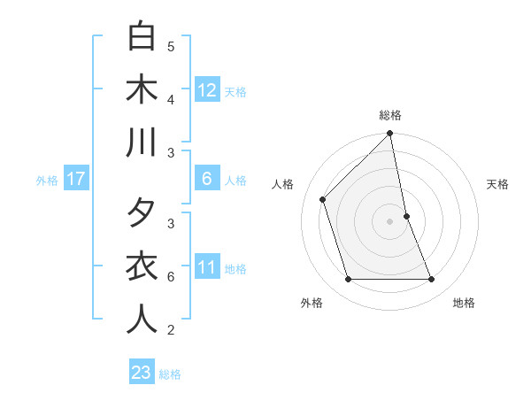 白木川 夕衣人さんを姓名の画数から五運を鑑定