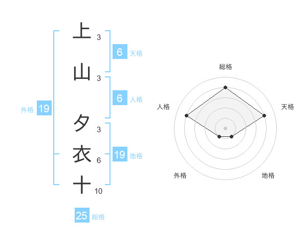 上山 夕衣十さんを姓名の画数から五運を鑑定