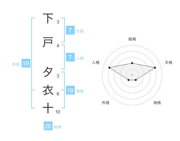 下戸 夕衣十さんを姓名の画数から五運を鑑定