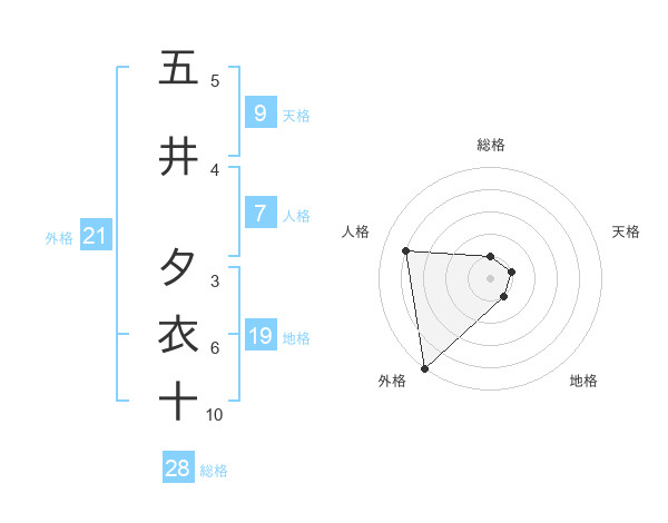 五井 夕衣十さんを姓名の画数から五運を鑑定