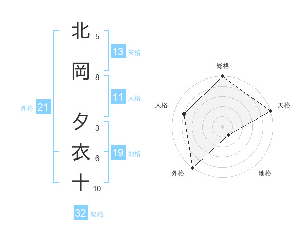 北岡 夕衣十さんを姓名の画数から五運を鑑定