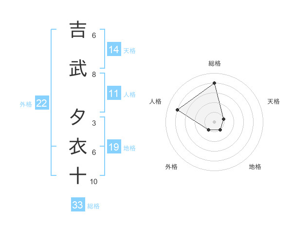 吉武 夕衣十さんを姓名の画数から五運を鑑定