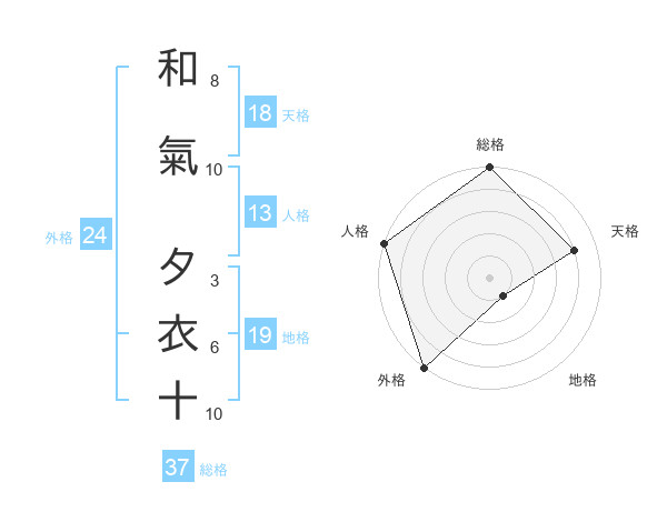 和氣 夕衣十さんを姓名の画数から五運を鑑定