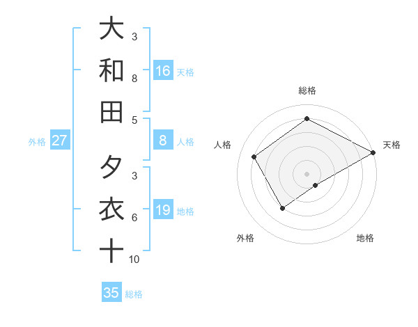大和田 夕衣十さんの天格は16画の5点