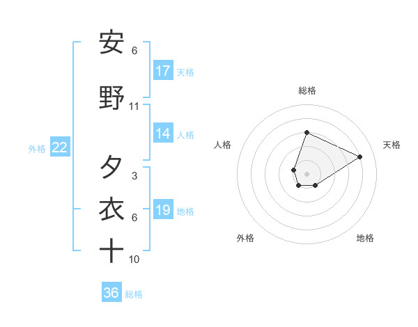 安野 夕衣十さんの天格は17画の4点!